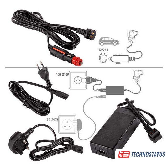 Основной материал | Чтобы начать процесс охлаждения в холодильнике, подключите его к подходящему источнику питания. Доступно несколько вариантов: Постоянный ток — гнездо прикуривателя (12/24 В, проводка в комплекте) Переменный ток — сетевая розетка (100–240 В, проводка в комплекте) Специальный модульный аккумулятор Yolco SX4B или SC4B (не входит в комплект) — холодильник оборудован соответствующей розеткой Специальный внешний аккумулятор Yolco CSX5 или RSX6 (не входит в комплект) Как модульный аккумулятор ёмкостью 15600 мА·ч, так и внешний аккумулятор ёмкостью 13000 мА·ч (CSX5) или 20000 мА·ч (RSX6) позволяют охлаждать устройство в любом месте при повышении температуры внутри холодильника. Кроме того, благодаря USB-портам холодильник можно использовать в качестве мощного внешнего аккумулятора для зарядки устройств, например, смартфонов. Кроме того, устройство оснащено передовыми функциями безопасности, такими как защита от разряда аккумуляторной батареи транспортного средства и защита от перенапряжения, которые предохраняют от резких скачков напряжения в электросети. Внешний аккумулятор RSX6 и модульные аккумуляторы можно заряжать с помощью специальной фотоэлектрической панели Yolco ZS100W, ZS200W, SP100W или SP200W (панели также не входят в комплект). |