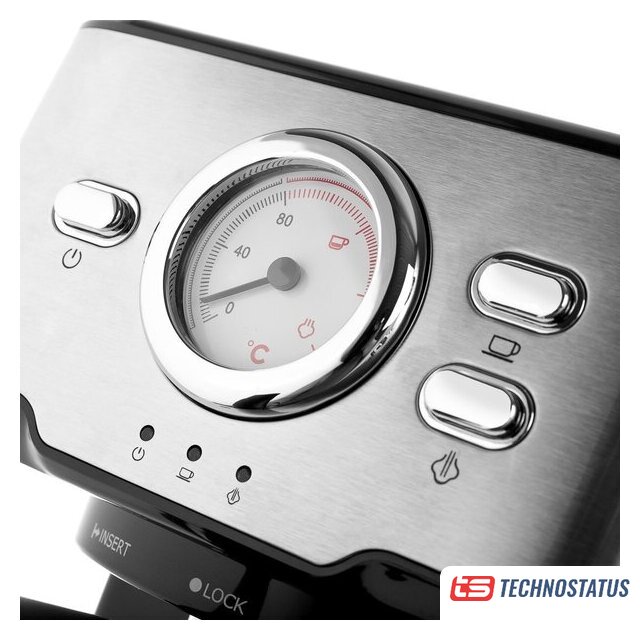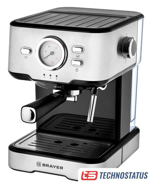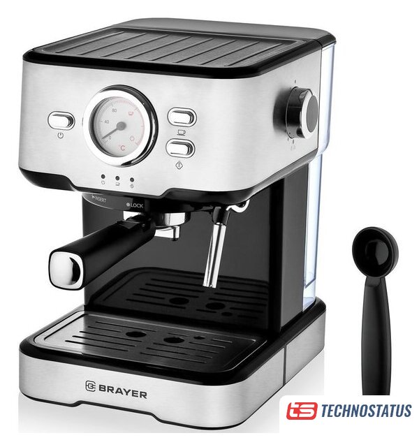 рожковая помповая кофеварка, 1200 Вт, корпус металл/пластик, капучинатор ручной, используемый кофе: молотый, цвет нержавеющая сталь/черный