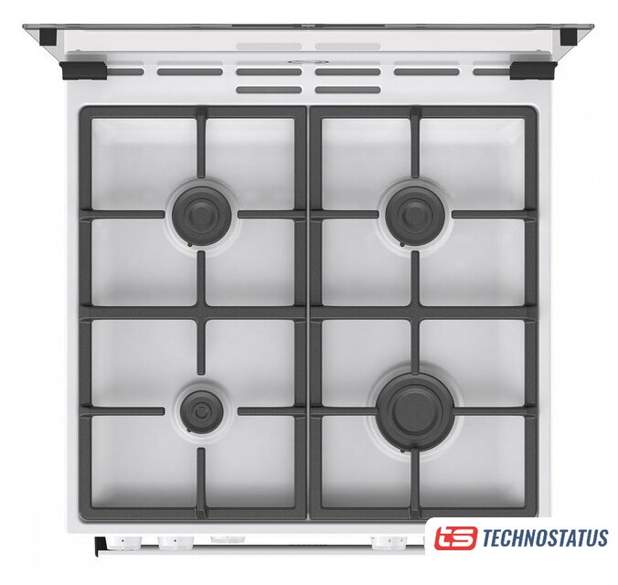 газовая панель + электрический духовой шкаф, газ-контроль конфорок, поверхность: эмалированная сталь, крышка из закалённого стекла, энергопотребление A, управление механическое, таймер электронный, размеры (ШхГхВ): 60x60x85 см, цвет белый