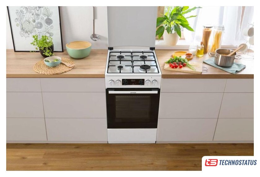 Technostatus.by предлагает купить в Минске газовую кухонную плиту с электрическим духовым шкафом Gorenje GK5C61WF.