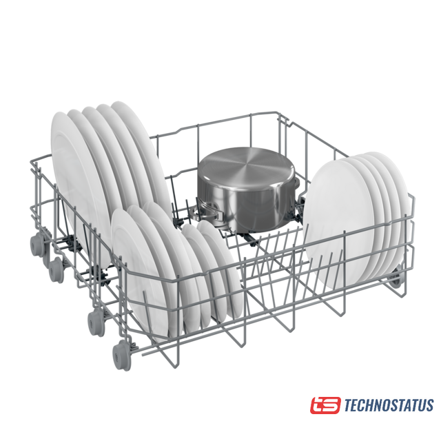 загрузка на 14 комплектов посуды, электронное управление, 6 программ, 59.6×55.8×80 см, нержавеющая сталь/черный цвет, сушка: конденсационная, половинная загрузка, индикация на полу: нет