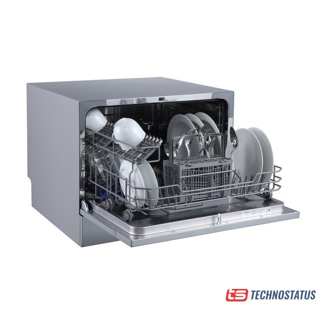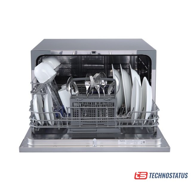 загрузка на 6 комплектов посуды, электронное управление, 6 программ, серебристый цвет, сушка: стандартная (конденсация), индикация на полу: нет