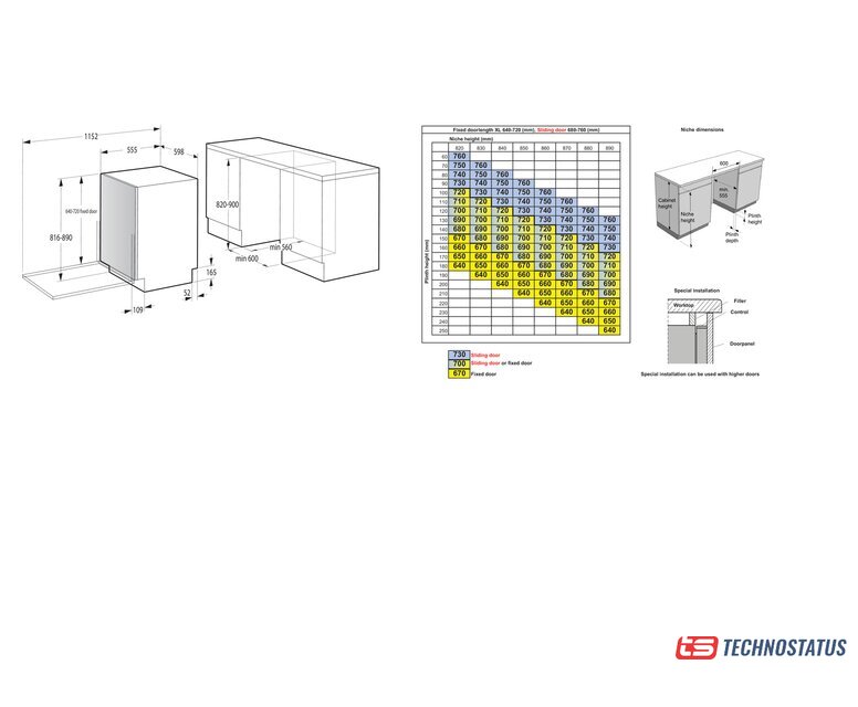 Размеры ниши для встраивания |