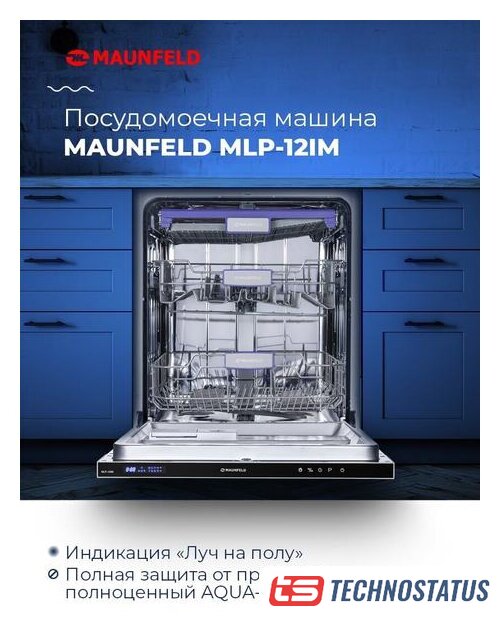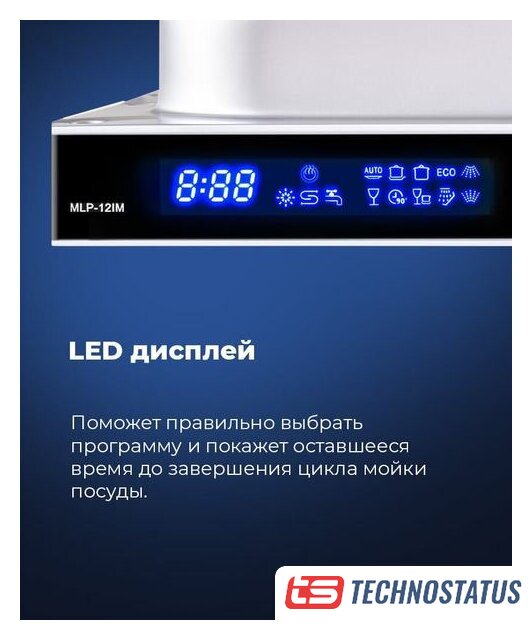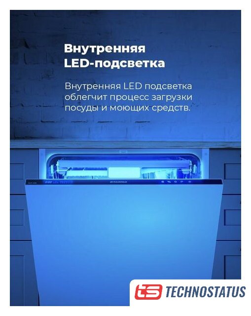 загрузка на 10 комплектов посуды, сенсорное управление, 7 программ, 44.6x55x82 см, черный цвет, сушка: с открыванием дверцы, индикация на полу: проекция дисплея