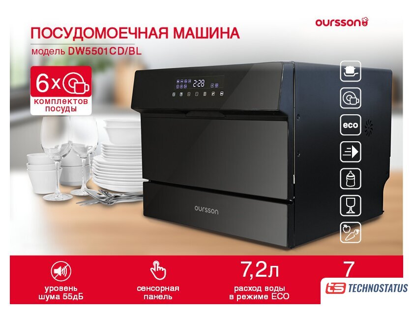 Technostatus.by предлагает купить в Минске компактную посудомоечную машину De’Longhi DDW07T Onics.