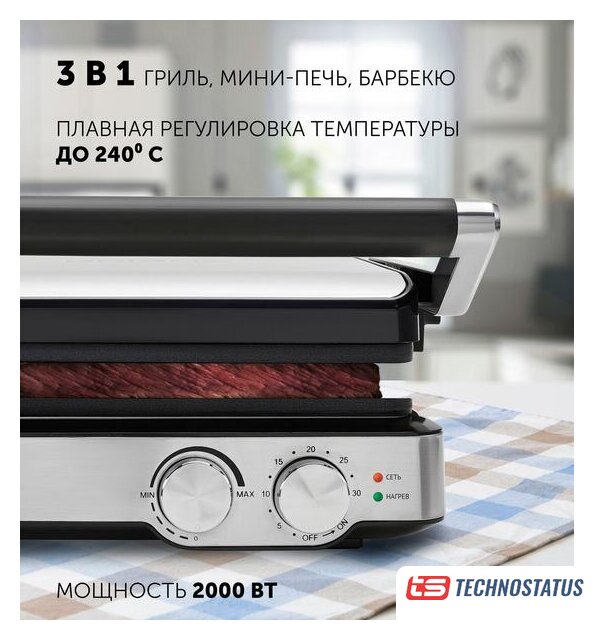 2000 Вт, универсальный, двухсторонний (гриль-пресс)
