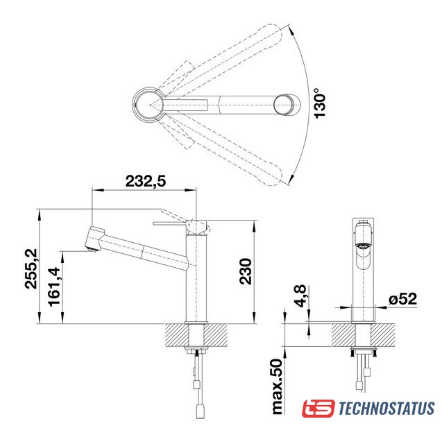 Поворотный излив | 130 ° |