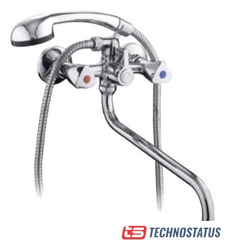 двухвентильный смеситель для ванны и душа, монтаж на стену