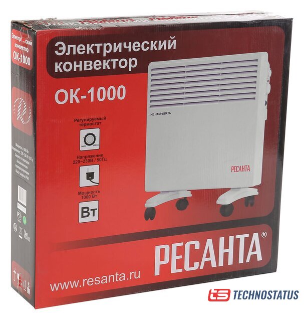 конвектор, 1000 Вт, термостат, крепление на стену, управление механическое