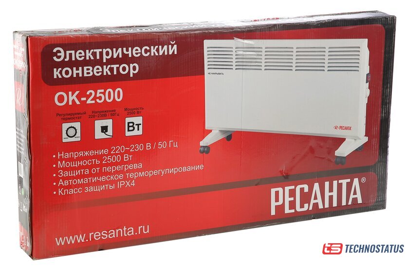 конвектор, 500 Вт, термостат, крепление на стену, управление механическое
