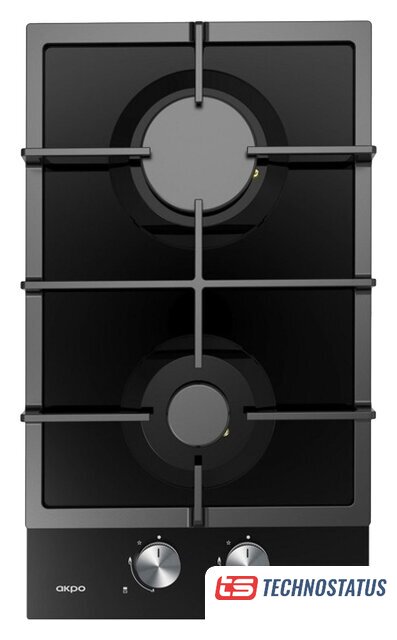 газовая на 2 конфорки, закаленное стекло, мощность: 4300 Вт, автоматический электроподжиг, газ-контроль, решетки: чугун, независимая установка, размеры (ШхГ): 29x51.5 см