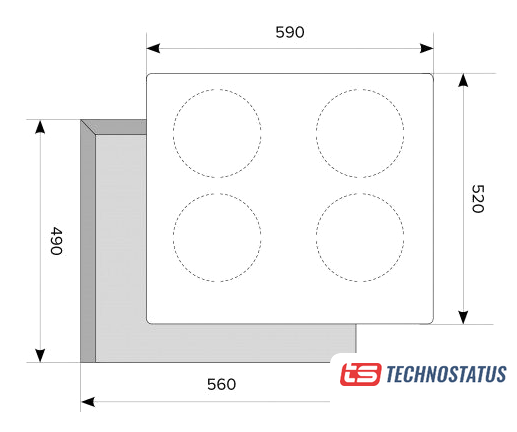 индукционная на 4 конфорки, закаленное стекло, мощность: 7200 Вт, независимая установка, размеры (ШхГ): 59x52 см