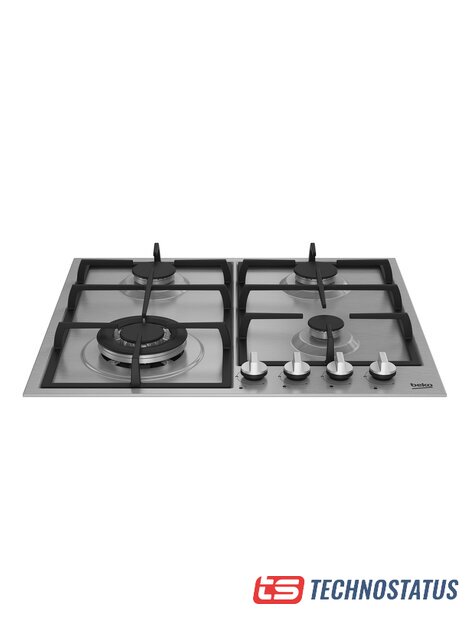 газовая на 4 конфорки, закаленное стекло, мощность: 8580 Вт, автоматический электроподжиг, газ-контроль, решетки: чугун, независимая установка, размеры (ШхГ): 60.4x52 см