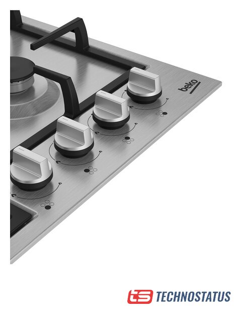 газовая на 5 конфорок, нержавеющая сталь, мощность: 10700 Вт, автоматический электроподжиг, газ-контроль, решетки: чугун, независимая установка, размеры (ШхГ): 69x51.5 см