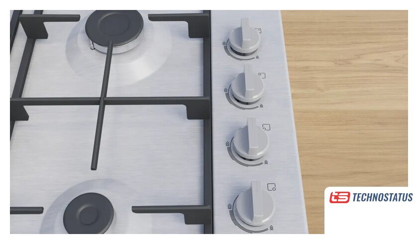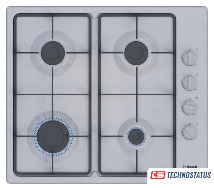 газовая на 4 конфорки, нержавеющая сталь, мощность: 8150 Вт, автоматический электроподжиг, газ-контроль, решетки: чугун, независимая установка, размеры (ШхГ): 60x52 см