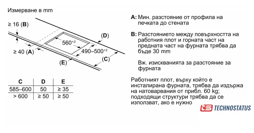 Размеры ниши для встраивания |