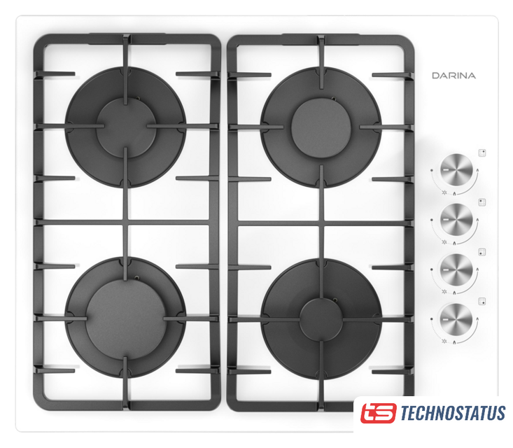 газовая на 4 конфорки, эмалированная сталь, мощность: 9350 Вт, автоматический электроподжиг, газ-контроль, решетки: чугун, размеры (ШхГ): 58x51 см