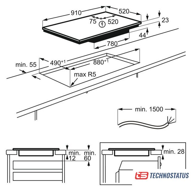 индукционная на 4 конфорки, cтеклокерамика, мощность: 7400 Вт, независимая установка, размеры (ШхГ): 59.6x51 см