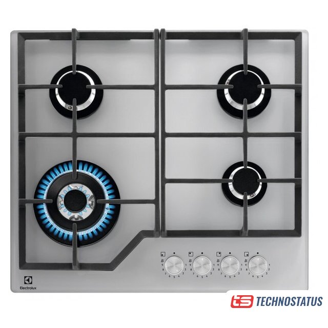 газовая на 4 конфорки, закаленное стекло, мощность: 7800 Вт, автоматический электроподжиг, газ-контроль, решетки: чугун, независимая установка, размеры (ШхГ): 59x52 см