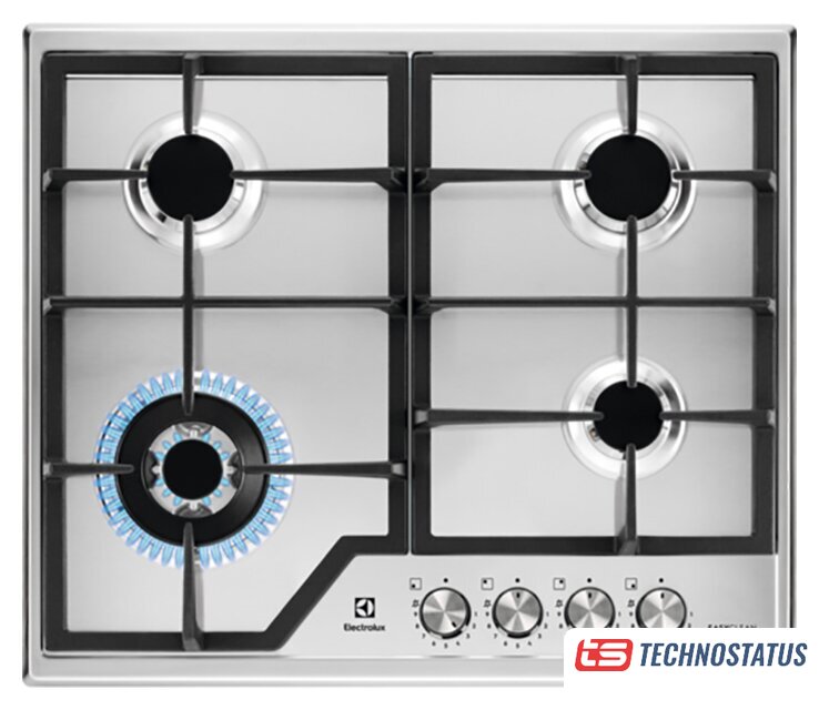 газовая на 4 конфорки, закаленное стекло, мощность: 8150 Вт, автоматический электроподжиг, газ-контроль, решетки: чугун, независимая установка, размеры (ШхГ): 58.5x51 см