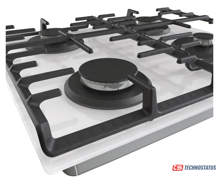 газовая на 4 конфорки, эмалированная сталь, мощность: 8150 Вт, автоматический электроподжиг, газ-контроль, решетки: чугун, независимая установка, размеры (ШхГ): 60x52 см