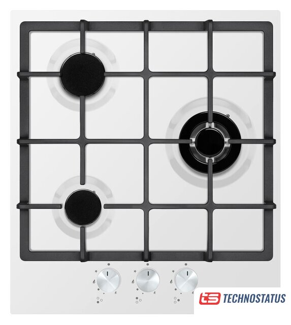 газовая на 3 конфорки, закаленное стекло, мощность: 6250 Вт, автоматический электроподжиг, газ-контроль, решетки: чугун, размеры (ШхГ): 45x51 см