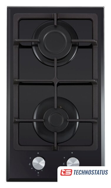 газовая на 2 конфорки, закаленное стекло, мощность: 4300 Вт, автоматический электроподжиг, газ-контроль, решетки: чугун, независимая установка, размеры (ШхГ): 29x51.5 см
