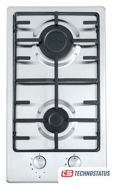 газовая на 2 конфорки, нержавеющая сталь, мощность: 4000 Вт, автоматический электроподжиг, решетки: эмалированная сталь, размеры (ШхГ): 30x51 см