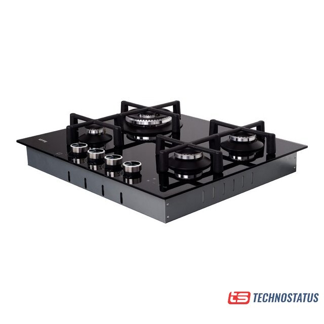 газовая на 4 конфорки, закаленное стекло, мощность: 8150 Вт, автоматический электроподжиг, газ-контроль, решетки: чугун, независимая установка, размеры (ШхГ): 58.5x51 см