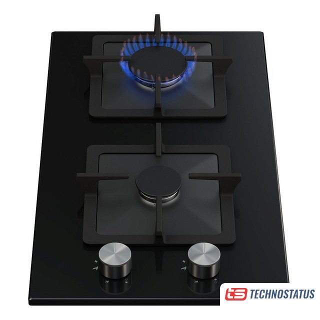 газовая на 2 конфорки, закаленное стекло, мощность: 4300 Вт, автоматический электроподжиг, газ-контроль, решетки: чугун, независимая установка, размеры (ШхГ): 29x51.5 см