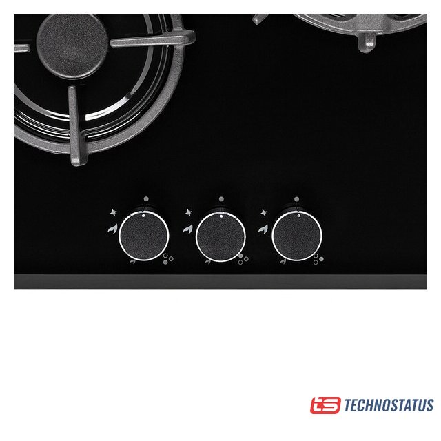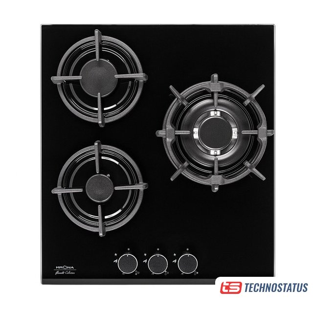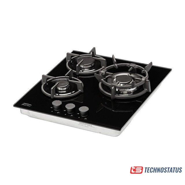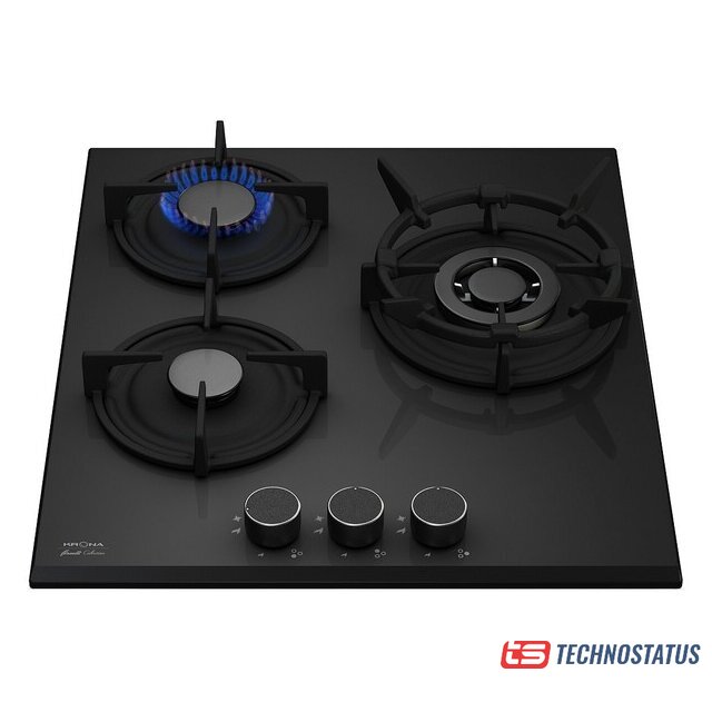 газовая на 3 конфорки, закаленное стекло, мощность: 6250 Вт, автоматический электроподжиг, газ-контроль, решетки: чугун, размеры (ШхГ): 45x51 см