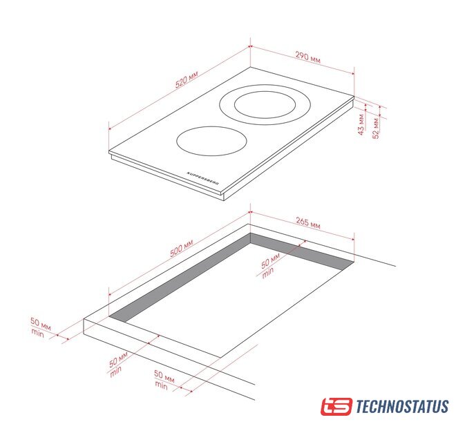 HiLight на 2 конфорки, cтеклокерамика, мощность: 2900 Вт, независимая установка, размеры (ШхГ): 30x52 см