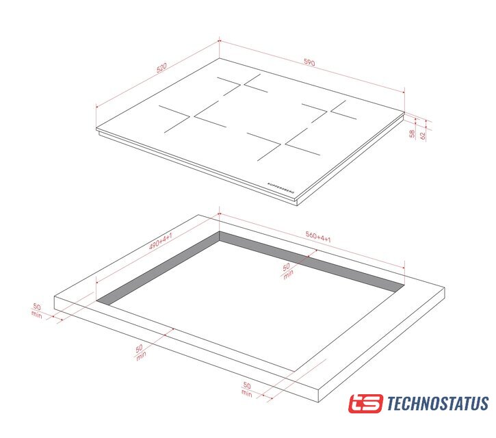 индукционная на 4 конфорки, cтеклокерамика, мощность: 7200 Вт, независимая установка, размеры (ШхГ): 59x52 см