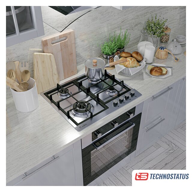 газовая на 3 конфорки, нержавеющая сталь, мощность: 6500 Вт, автоматический электроподжиг, газ-контроль, решетки: чугун, независимая установка, размеры (ШхГ): 44x51 см