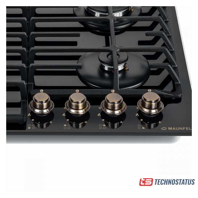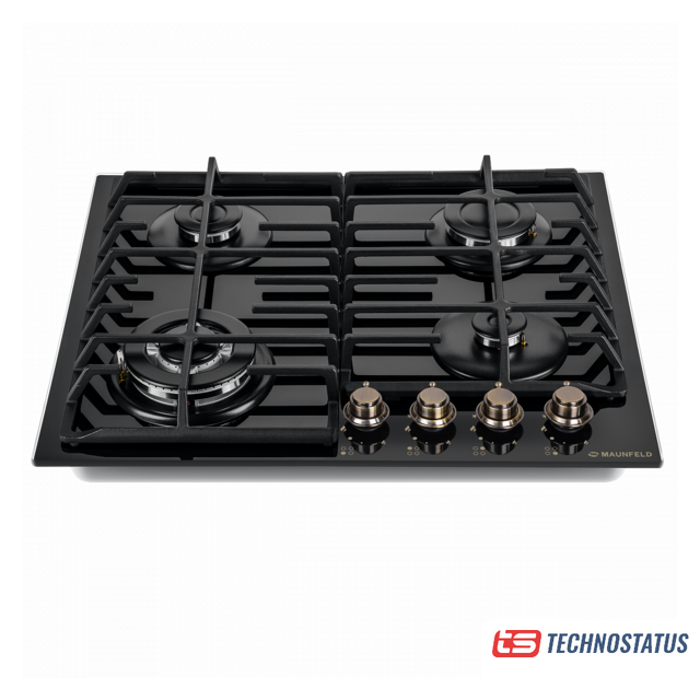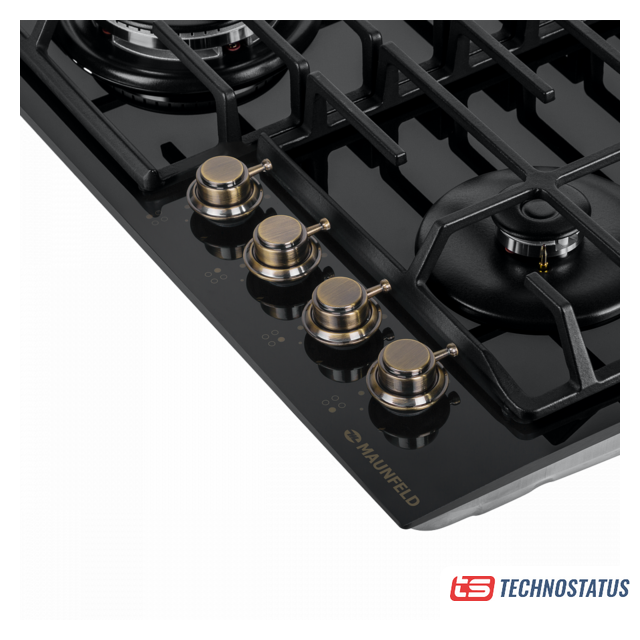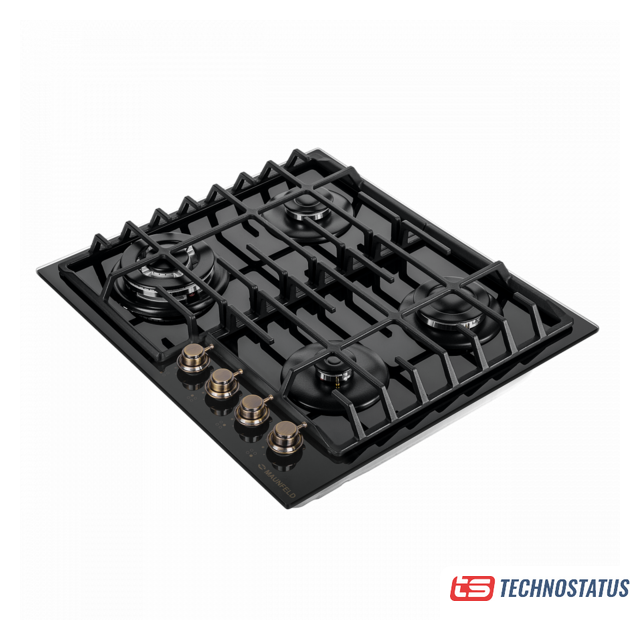 газовая на 4 конфорки, закаленное стекло, мощность: 8600 Вт, автоматический электроподжиг, газ-контроль, решетки: чугун, независимая установка, размеры (ШхГ): 58.4x51 см