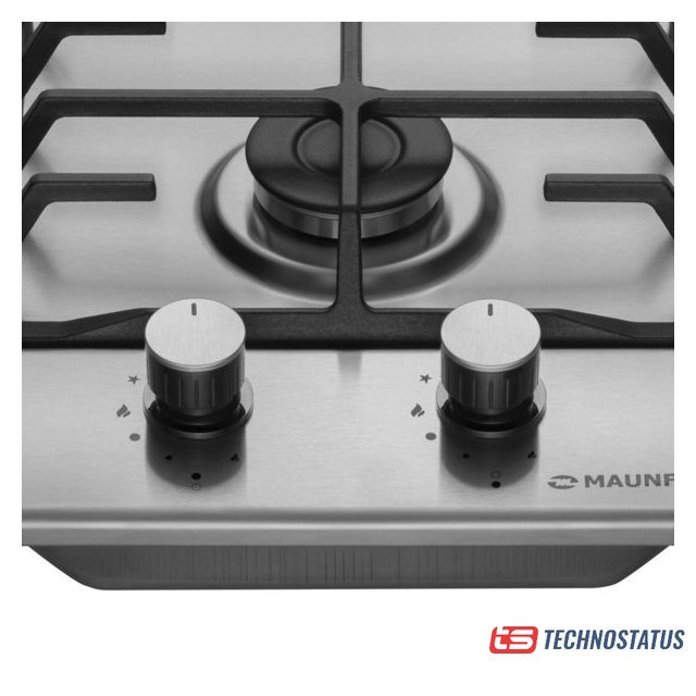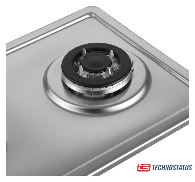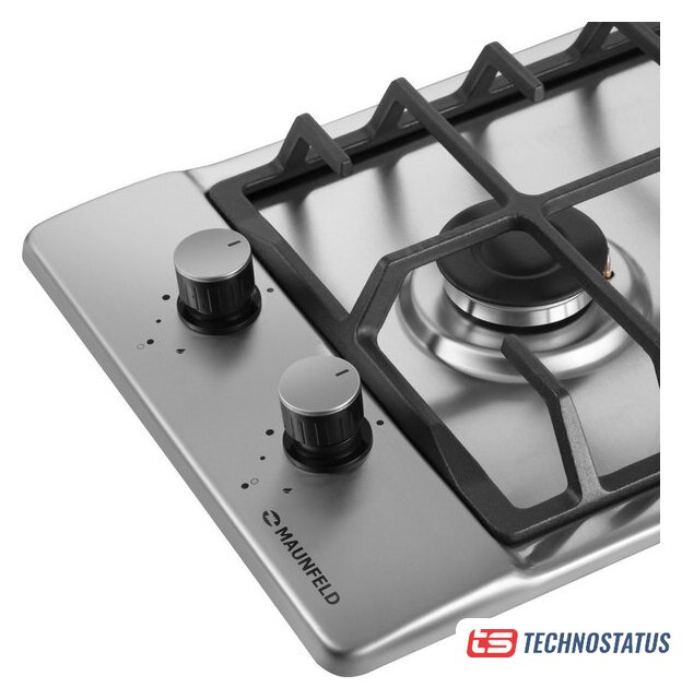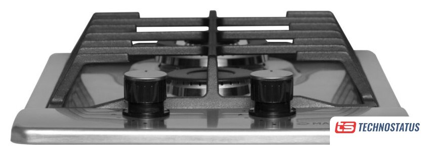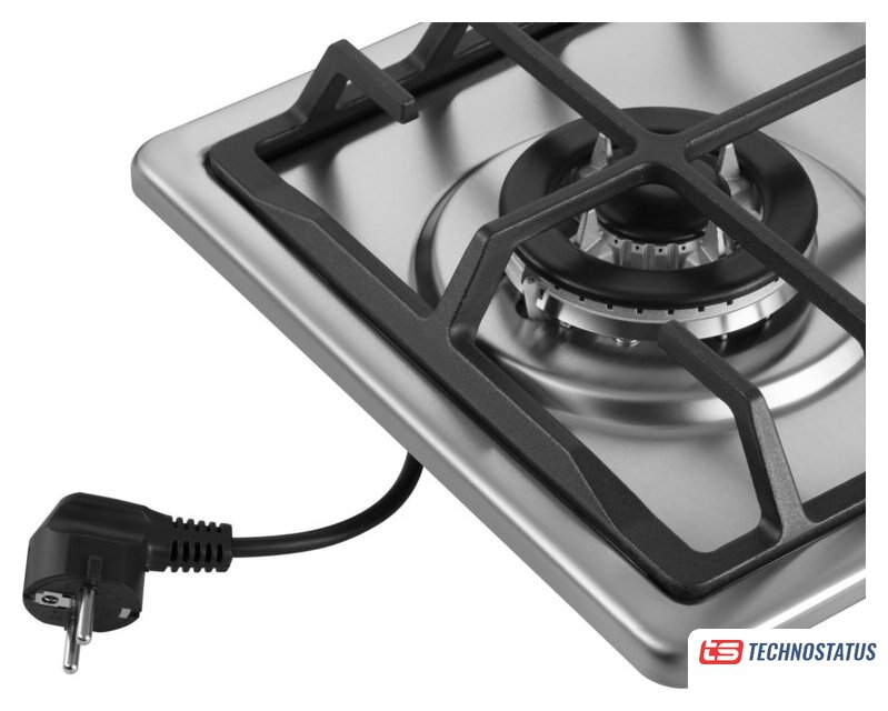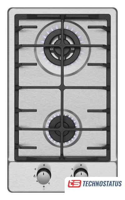 газовая на 2 конфорки, нержавеющая сталь, мощность: 3500 Вт, автоматический электроподжиг, газ-контроль, решетки: чугун, размеры (ШхГ): 30x50 см