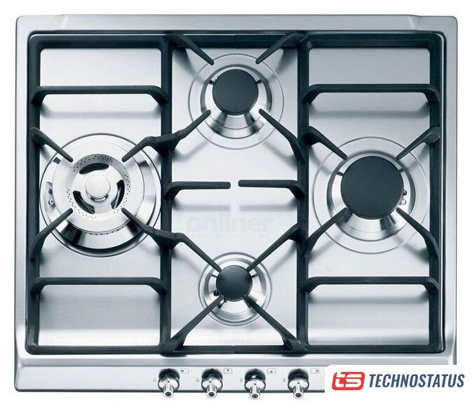 газовая на 4 конфорки, нержавеющая сталь, мощность: 7500 Вт, автоматический электроподжиг, газ-контроль, решетки: чугун, размеры (ШхГ): 58.2x52 см