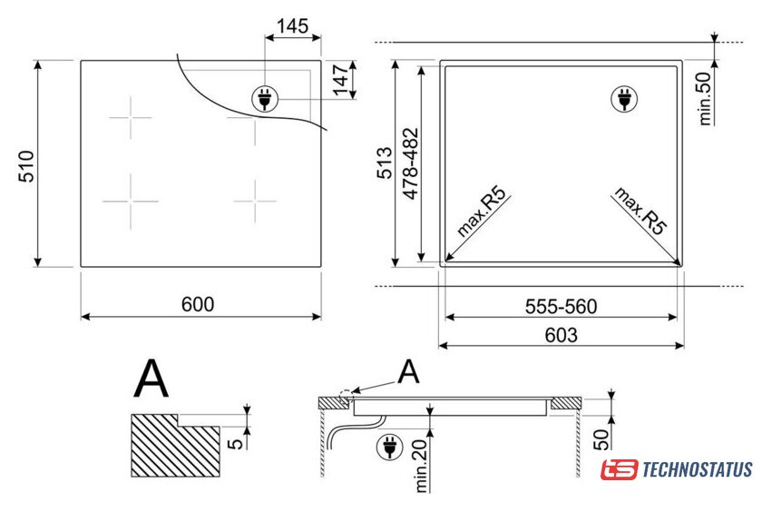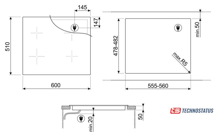 индукционная на 4 конфорки, cтеклокерамика, мощность: 7350 Вт, независимая установка, размеры (ШхГ): 71x52 см
