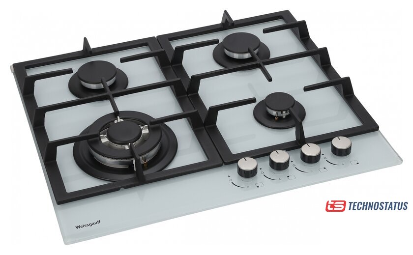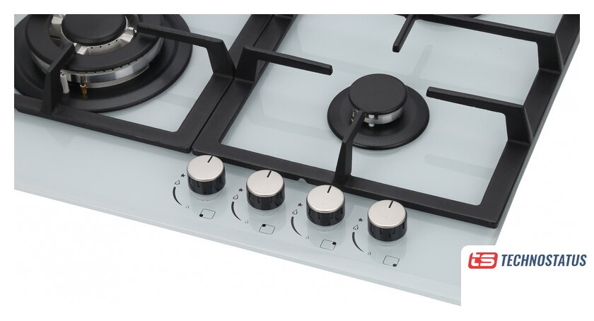 газовая на 4 конфорки, закаленное стекло, мощность: 9500 Вт, автоматический электроподжиг, газ-контроль, решетки: чугун, независимая установка, размеры (ШхГ): 64.6x52.4 см