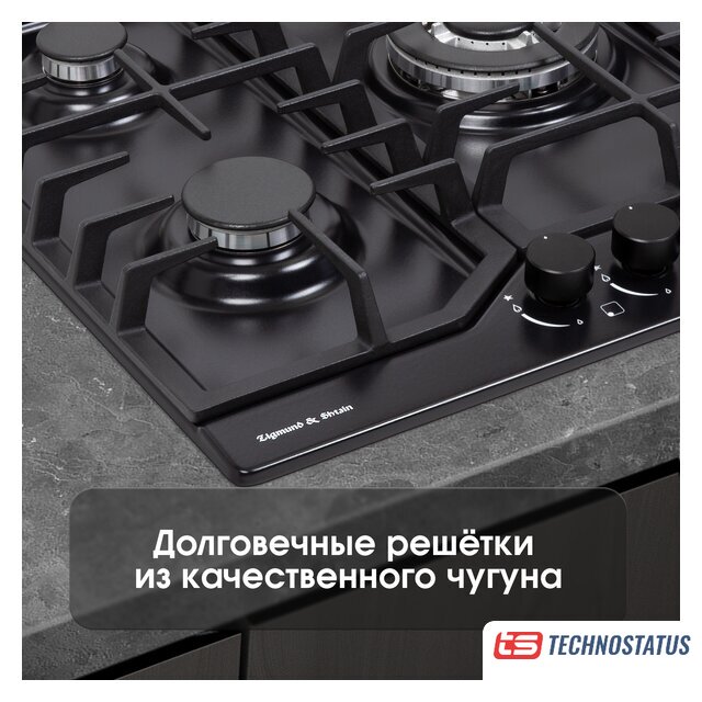 газовая на 4 конфорки, закаленное стекло, мощность: 9100 Вт, автоматический электроподжиг, газ-контроль, решетки: чугун, независимая установка, размеры (ШхГ): 59x51.5 см