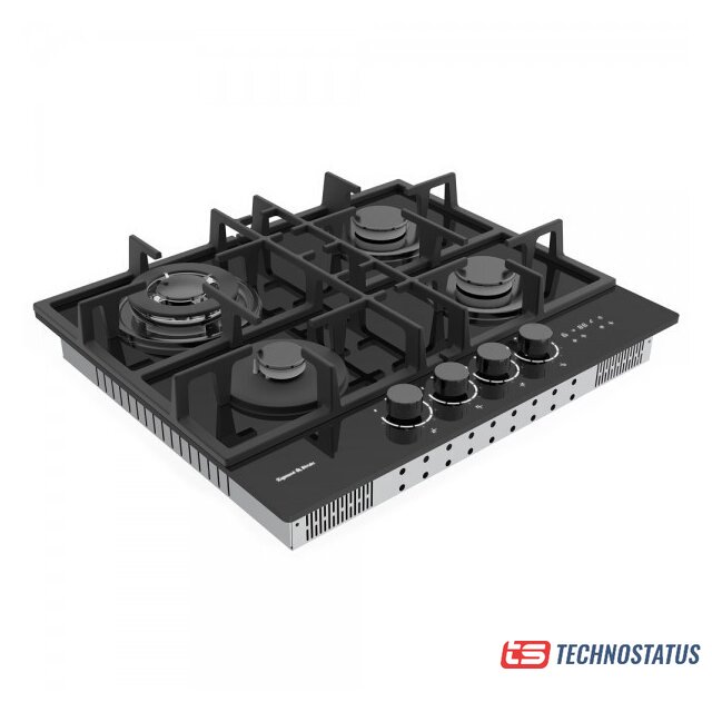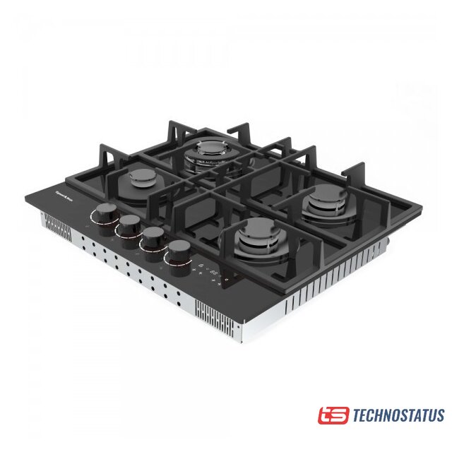 газовая на 4 конфорки, закаленное стекло, мощность: 8060 Вт, автоматический электроподжиг, газ-контроль, решетки: чугун, независимая установка, размеры (ШхГ): 58.4x51 см
