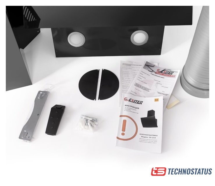 Комплектация | Пластиковая гофра (2м), планка для навешивания вытяжки, кронштейн для навешивания короба-удлинителя, обратный клапан, короб удлинитель 2 шт, саморезы-дюбеля. |