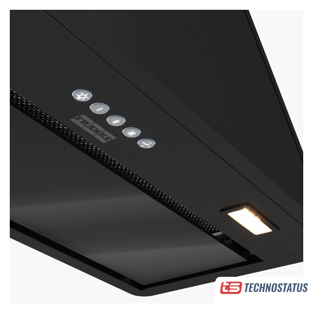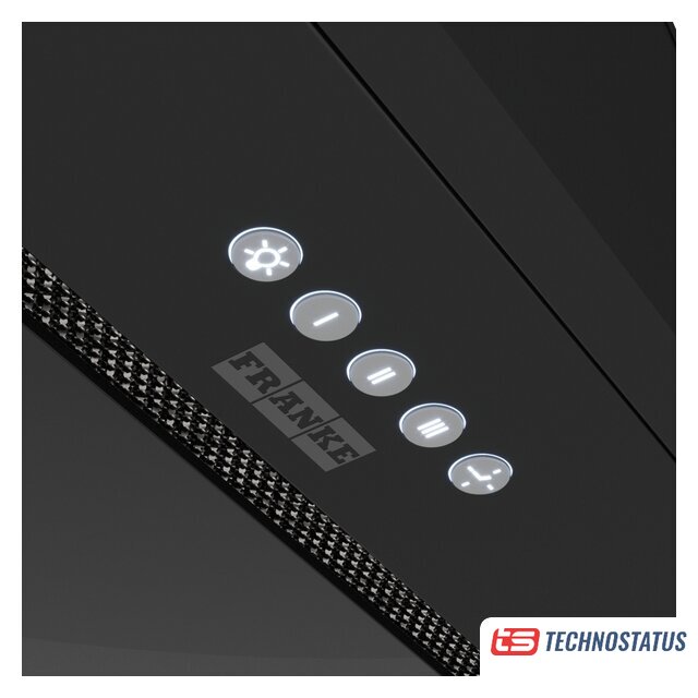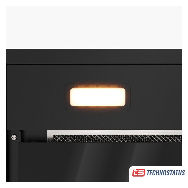 конструкция скрытая, монтаж для встраивания, ширина 52 см, управление сенсорное/жестами, производительность мотора 750 м³/ч, цвет черный