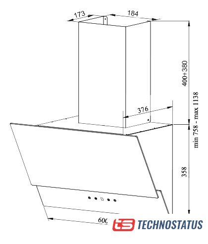 Technostatus.by предлагает купить в Минске кухонную вытяжку Krona Jina 600 Black S.