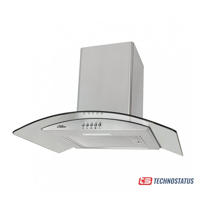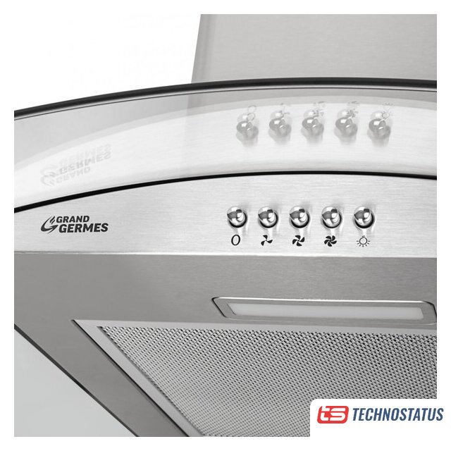 конструкция купольная, монтаж настенный, ширина 60 см, управление механическое/кнопочное, производительность мотора 500 м³/ч, цвет нержавеющая сталь
