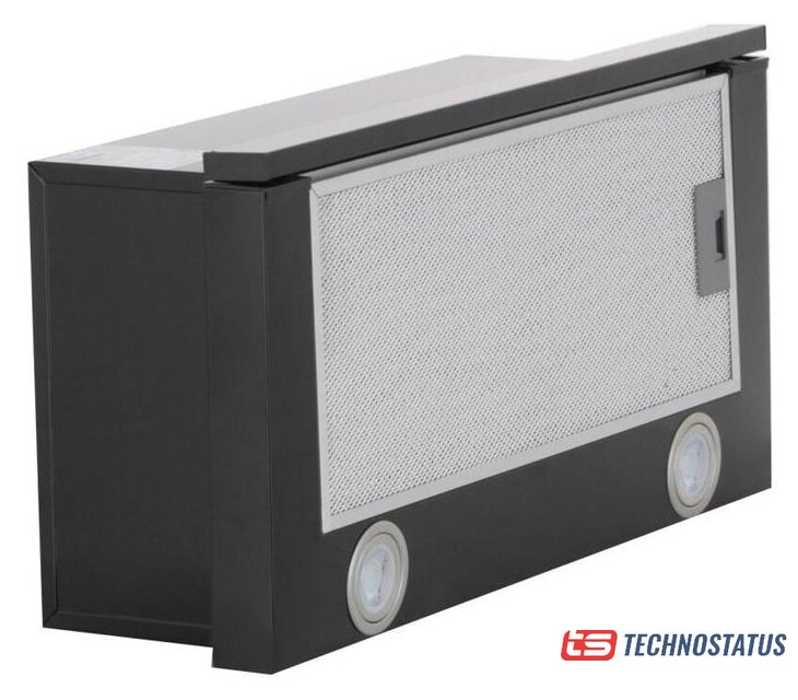 конструкция скрытая, монтаж для встраивания, ширина 59.8 см, управление электронное, производительность мотора 750 м³/ч, цвет черный