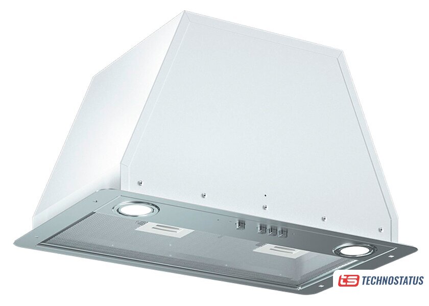 конструкция купольная, монтаж настенный, ширина 60 см, управление механическое/кнопочное, производительность мотора 500 м³/ч, цвет белый