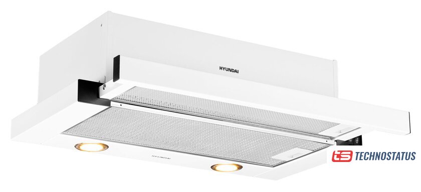 конструкция скрытая, монтаж для встраивания, ширина 52.5 см, управление механическое/кнопочное, производительность мотора 550 м³/ч, цвет белый