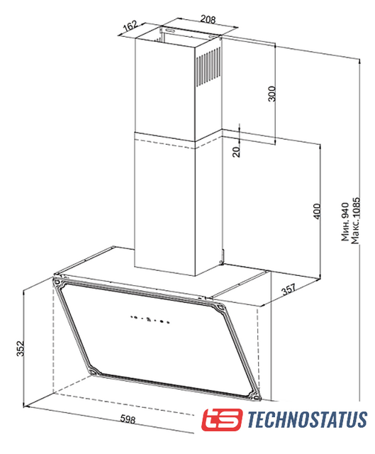 конструкция наклонная, монтаж настенный, управление сенсорное, производительность мотора 450 м³/ч, ширина 60 см