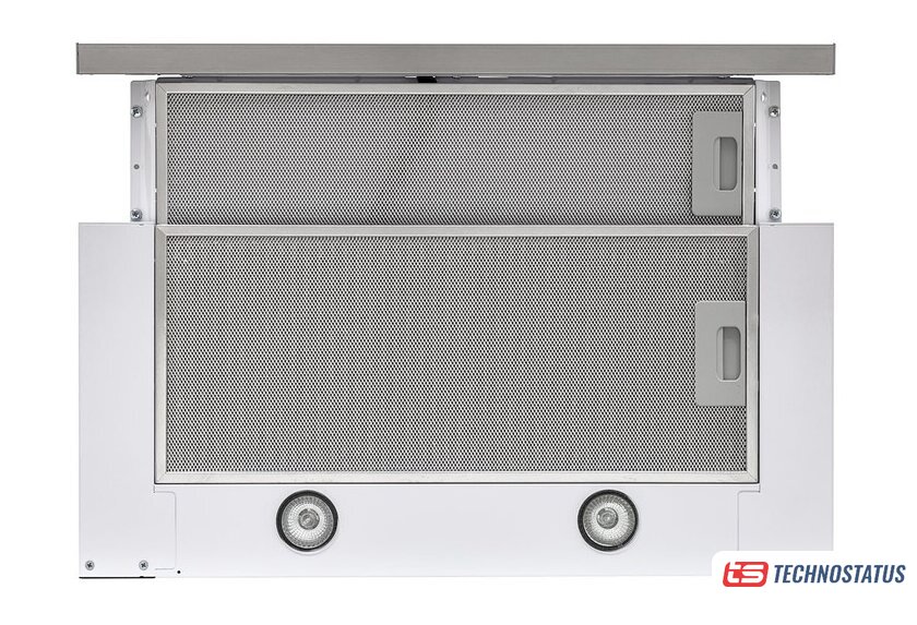 конструкция плоская, монтаж для встраивания, ширина 52.5 см, управление механическое/кнопочное, производительность мотора 650 м³/ч, цвет нержавеющая сталь